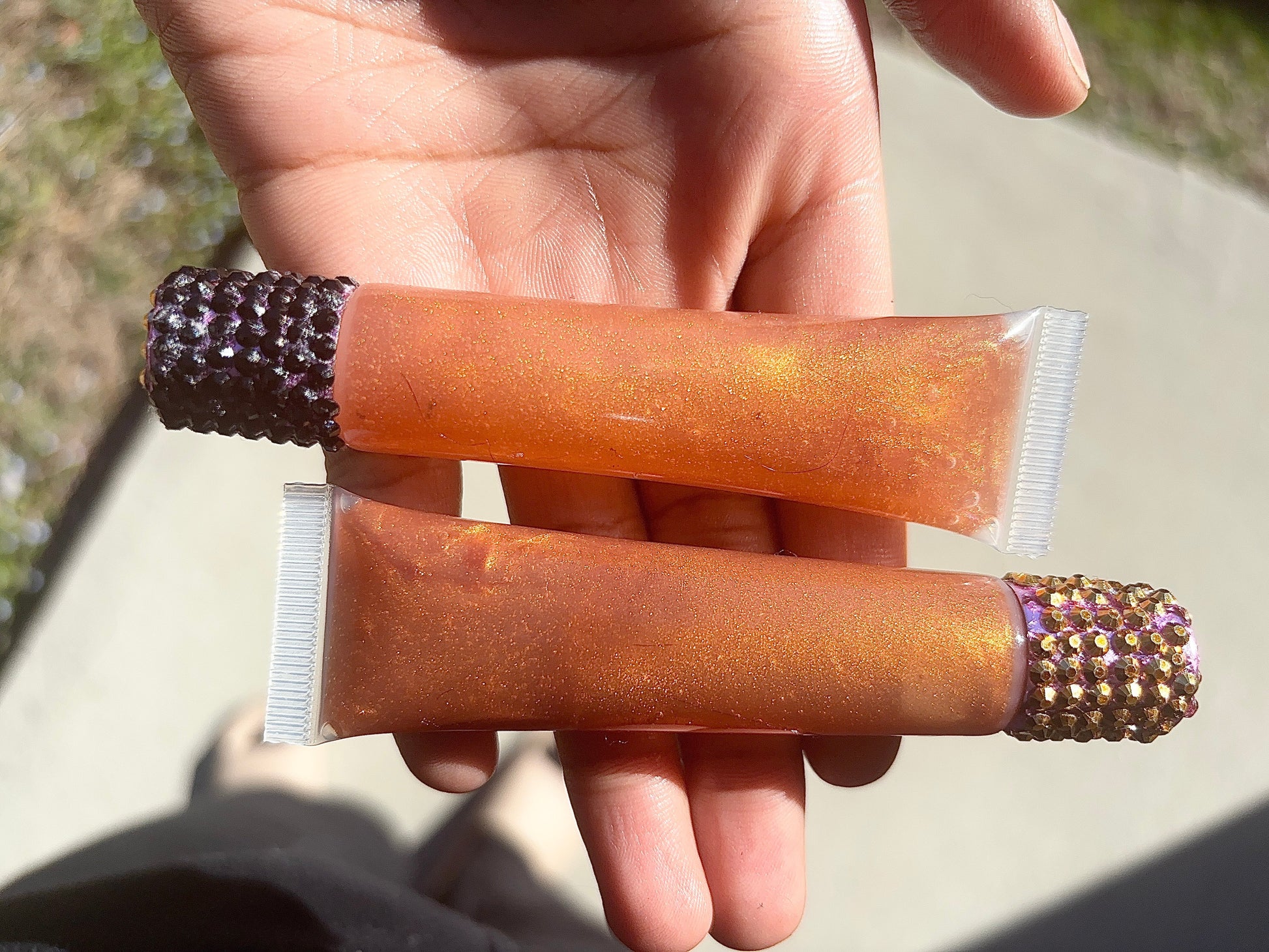 Embrace a warm, sophisticated glow with the Bronze Sparkle Gloss. This shade adds depth and dimension to your lips, providing a radiant, metallic finish enriched by hydrating oils. Includes the irresistible berry flavor and bejeweled cap. With Bronze, your lips become a statement of contemporary luxury and effortless style.
